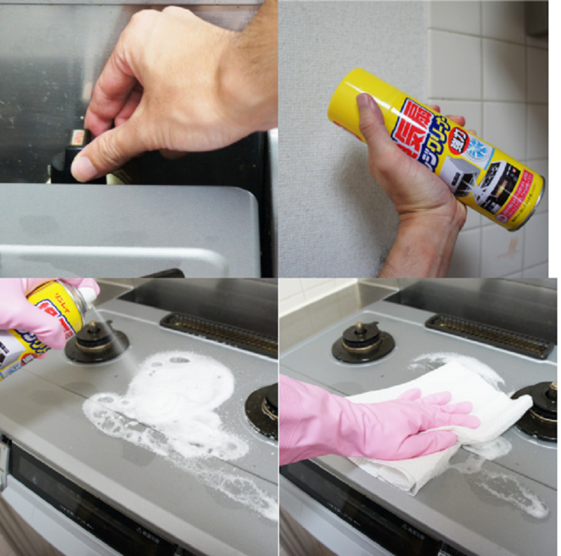 – Chỉ với vài xịt, nó hòa tan và loại bỏ mọi vết dầu mỡ cứng đầu với các thành phần phân hủy mạnh có trong lớp bọt bong bóng của sản phẩm.